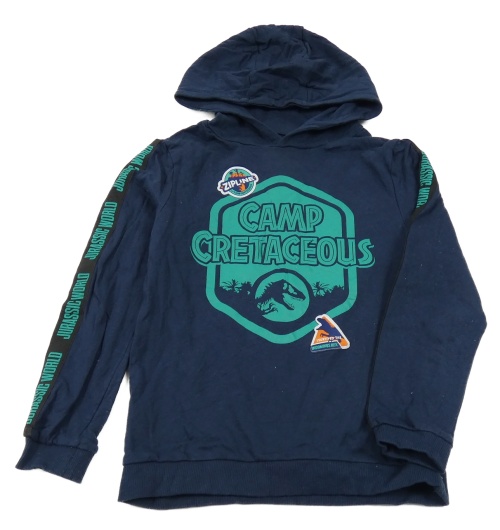 Tmavomodro-zelená mikina s nápisy a diny a kapucí