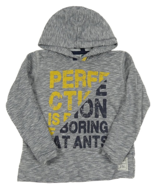 Tmavomodrá melírovaná mikina s nápisem a kapucí