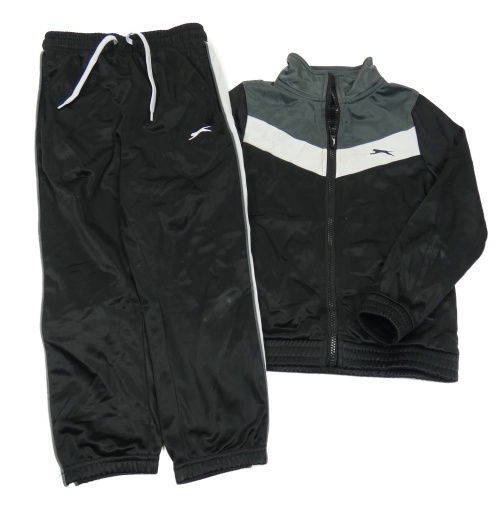 2 set- Černé sportovní tepláky s logem + černo-šedá propínací mikina s logem Slazenger