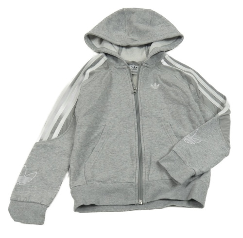 Světlešedo-bílá melírovaná propínací mikina s logem a kapucí Adidas
