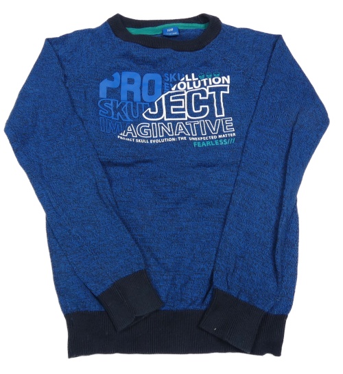 Safírový melírovaný svetr s nápisem Y.F.K.
