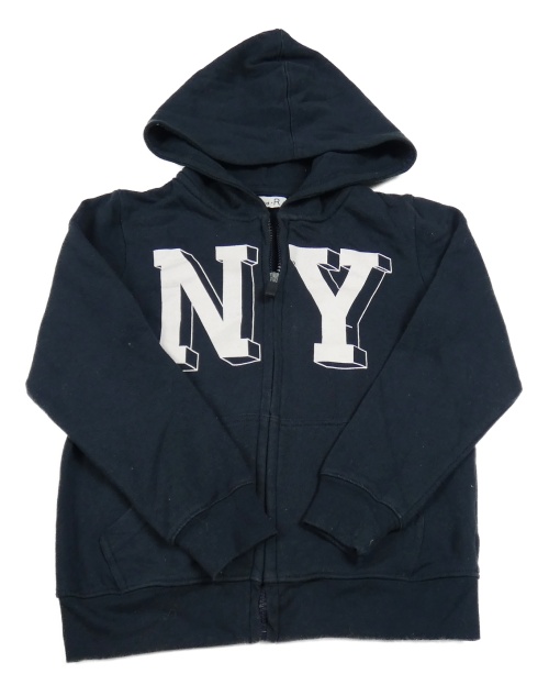 Tmavomodrá propínací mikina s potiskem a kapucí La Redoute