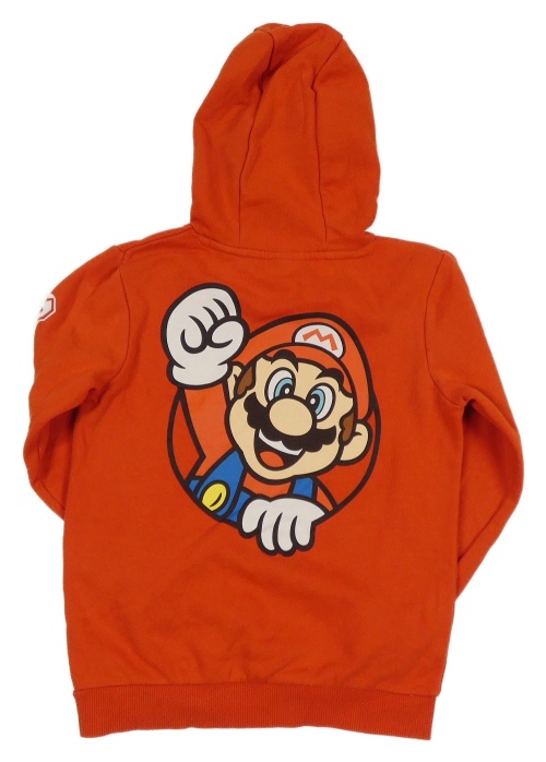 Červená mikina s Mariem a kapucí