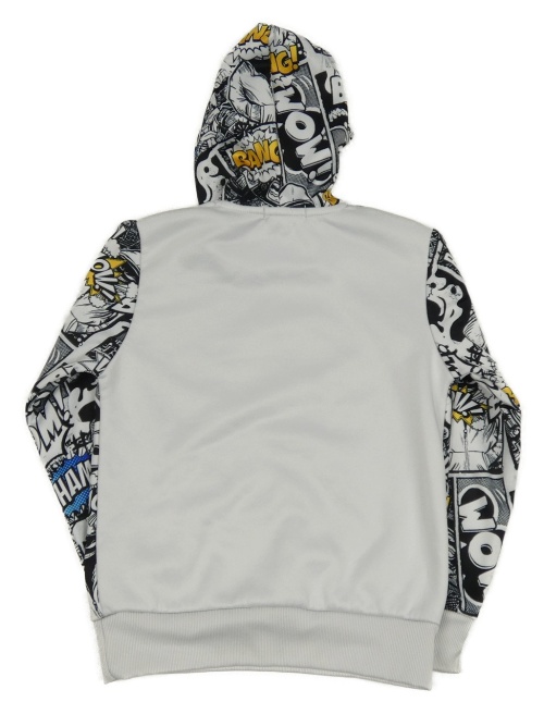 Bílo-černá mikina s komiksem a kapucí