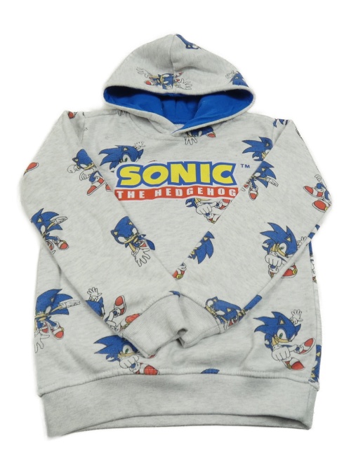 Světlešedá melírovaná mikina se Sonicem a kapucí