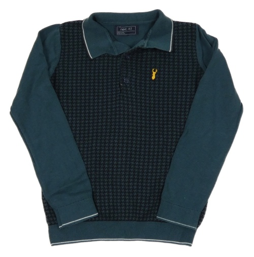 Tmavopetrolejovo/tmavomodrý vzorovaný svetr s nášivkou a límečkem Next
