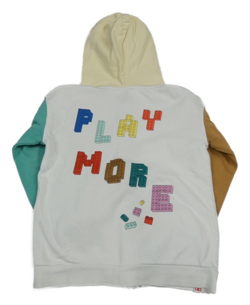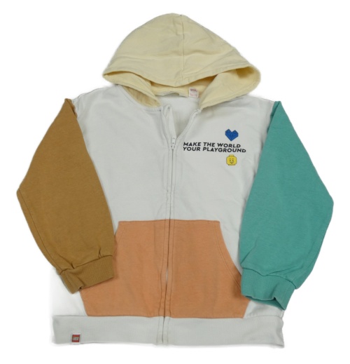 Bílá propínací mikina s barevnými rukávy, potiskem a kapucí H&M