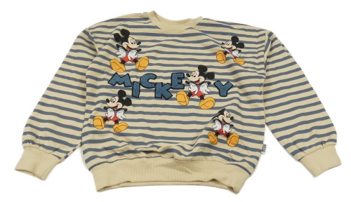 Béžovo-modrá pruhovaná lehká oversize mikina s Mickeym