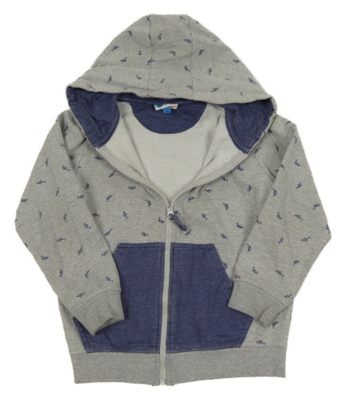 Šedo-modrá propínací mikina se žraloky a kapucí
