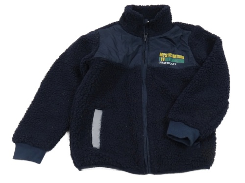 Tmavomodrá huňatá podšitá propínací mikina s šusťákem a nápisem Kids