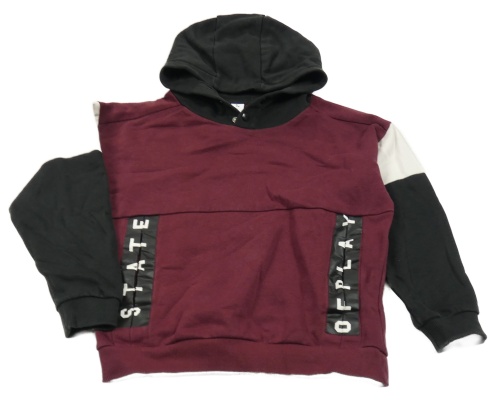 Vínovo-černo-bílá mikina s nápisem a kapucí Tu