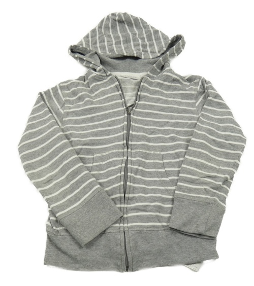 Šedo-bílá pruhovaná propínací mikina s kapucí