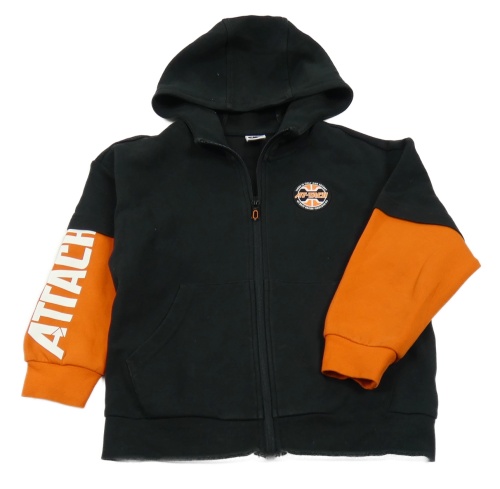 Černo-oranžová propínací mikina s nášivkou a kapucí