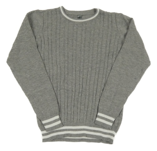 Šedý svetr s copánkly a bílým lemem