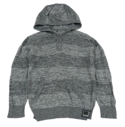Šedo-tmavošedý melírovaný svetr s kapsou a nášivkou a kapucí George