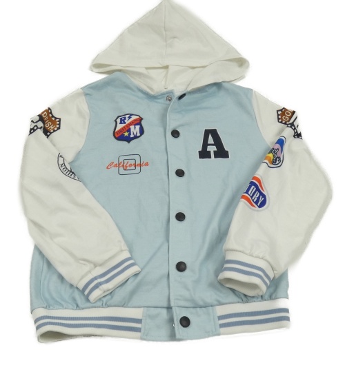 Světlemodro-bílá baseballová mikina s obrázky a písmenem a kapucí Shein