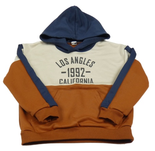 Béžovo-hnědo-tmavomodrá mikina s nápisem a kapucí Shein