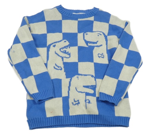 Modro-smetanový kostkovaný svetr s dinosaury H&M