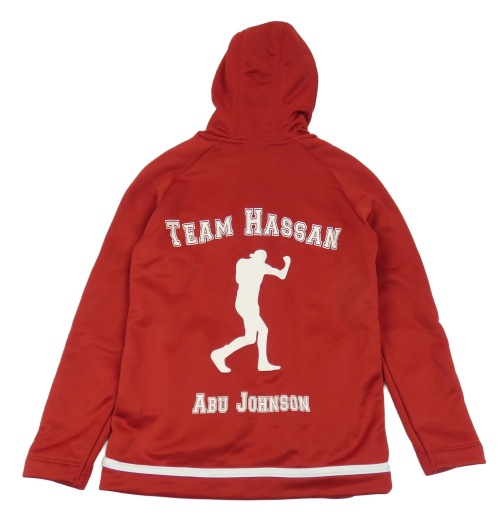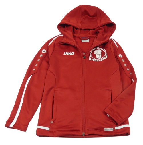 Červená sportovní propínací mikina s potiskem a kapucí Jako