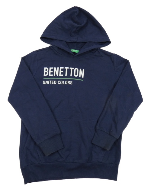 Tmavomodrá mikina s nápisem a kapucí Benetton