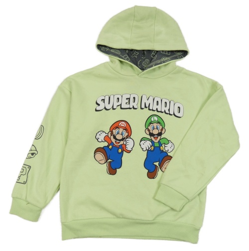 Zelenkavá mikina s Mariem a kapucí