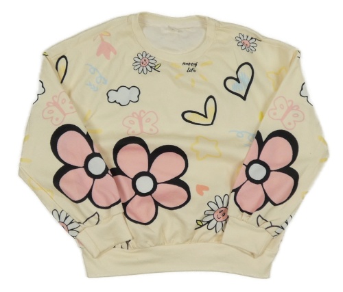 Vanilkpvá mikina se srdíčky a květy
