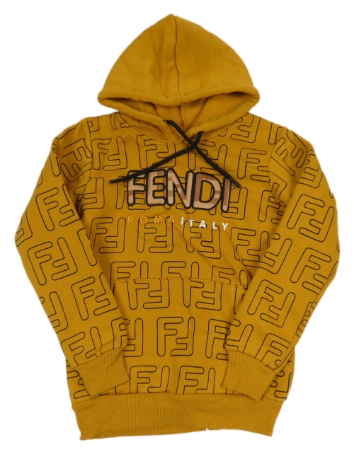 Medová mikina s nápisy Fendi a kapucí