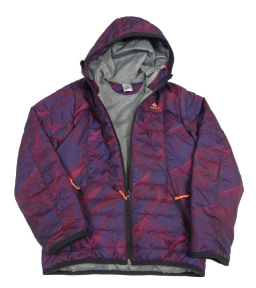 Tmavomodro-vínová vzorovaná šusťáková funkční zateplená bunda s kapucí Quechua