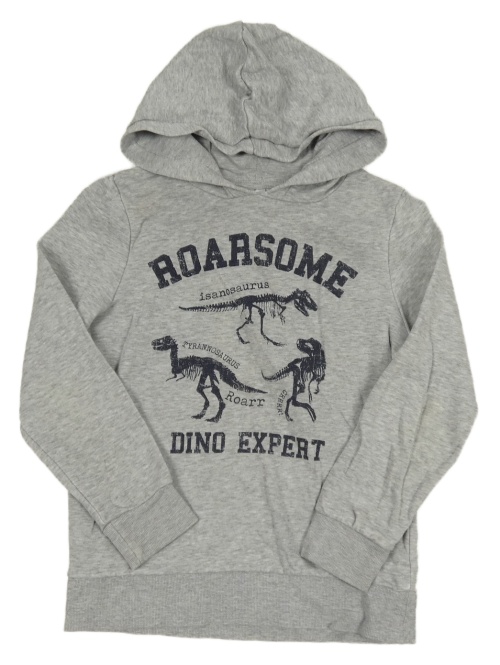 Šedá melírovaná mikina s dinosaury a kapucí C&A