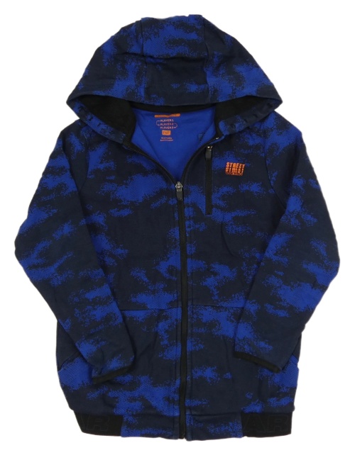 Tmavomodro-modrá vzorovaná propínací mikina s nápisem a kapucí F&F