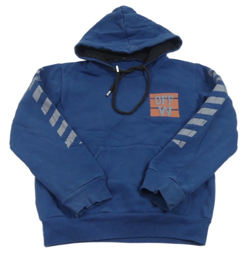 Tmavomodrá mikina s potiskem a kapucí