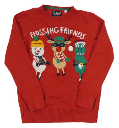 Červený svetr se sobem a sněhuláčkem a dinosaurem C&A