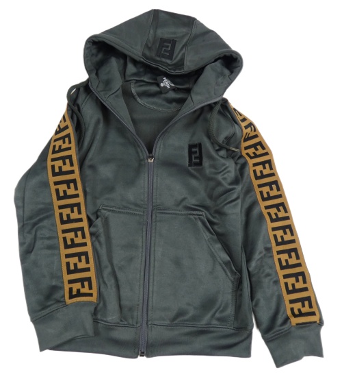 Tmavošedá propínací mikina s pruhy na rukávech a kapucí