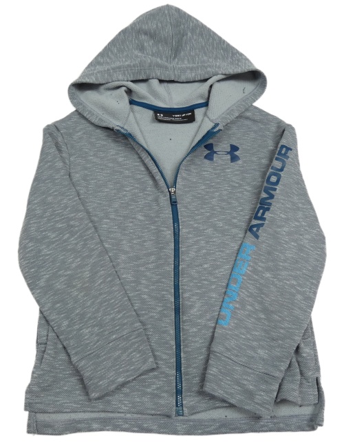 Šedá melírovaná funkční propínací mikina s logem a kapucí UNDER ARMOUR
