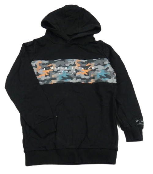 Černo-army mikina s nápisem a kapucí Tu