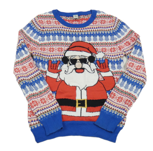 Modro-bílo-červený vzorovaný svetr se Santou Tu
