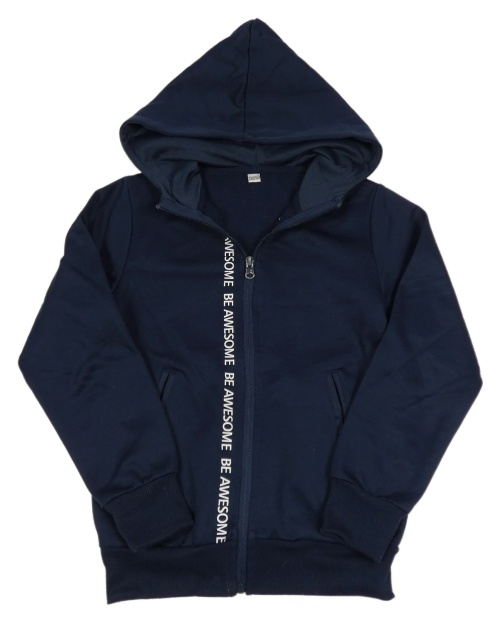 Tmavomodrá sportovní propínací mikina s nápisem a kapucí