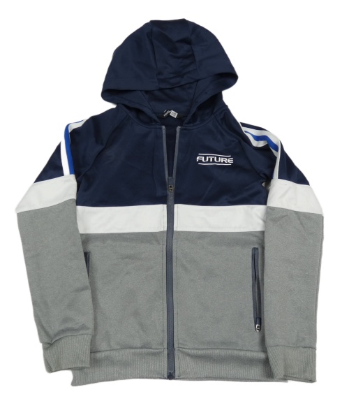 Tmavomodro-bílo-šedá sportovní propínací mikina s nápisem a kapucí Pep&Co
