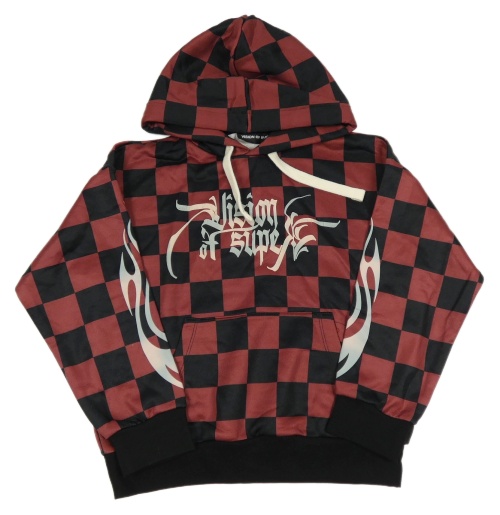 Vínovo-černá kostkovaná mikina s nápisem a kapucí