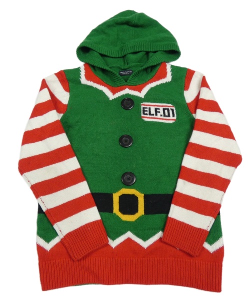 Zeleno-bílo-červený vánoční svetr s kapucí - Elf F&F