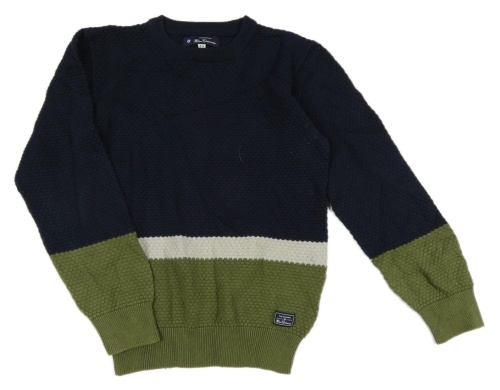 Tmavomodro-khaki-šedý vzorovaný svetr Ben Sherman