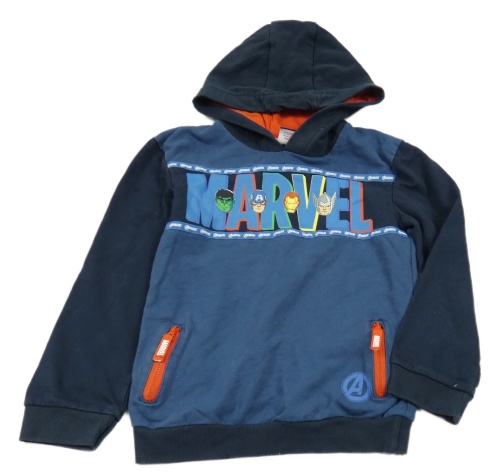 Tmavomodro-modrá mikina se superhrdiny a kapucí George