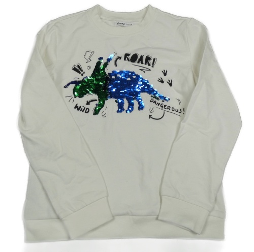 Smetanová mikina s dinosaurem z překlápěcích flitrů Sinsay
