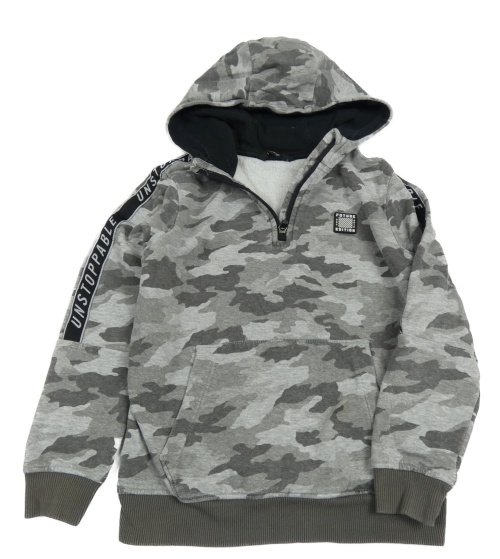 Šedá army melírovaná mikina s nášivkou a pruhem s nápisy a kapucí George