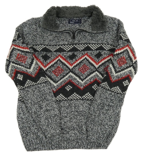 Tmavošedo-bílo-červený melírovaný vlněný vzorovaný svetr Next