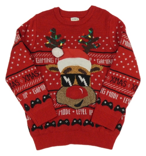 Červený melírovaný vzorovaný svetr se sobem a blikátkem F&F
