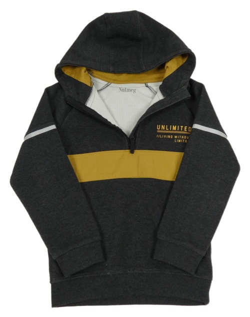 Tmavošedo-okrová melírovaná mikina s nápisy a kapucí Nutmeg