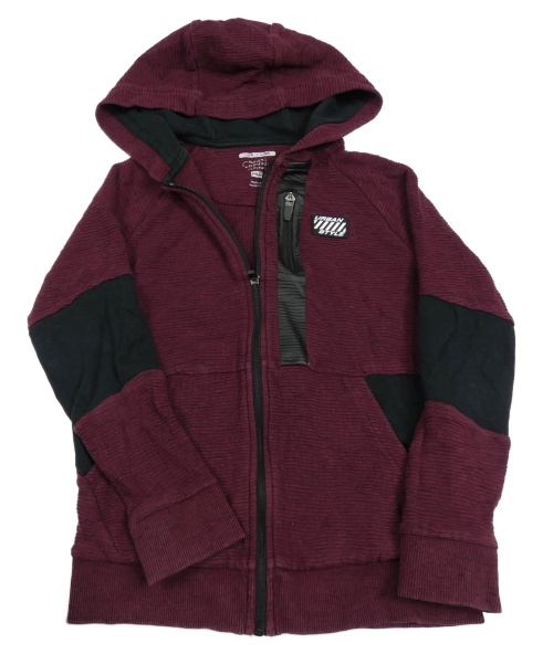 Vínová melírovaná žebrovaná propínací mikina s nášivkou a kapucí F&F