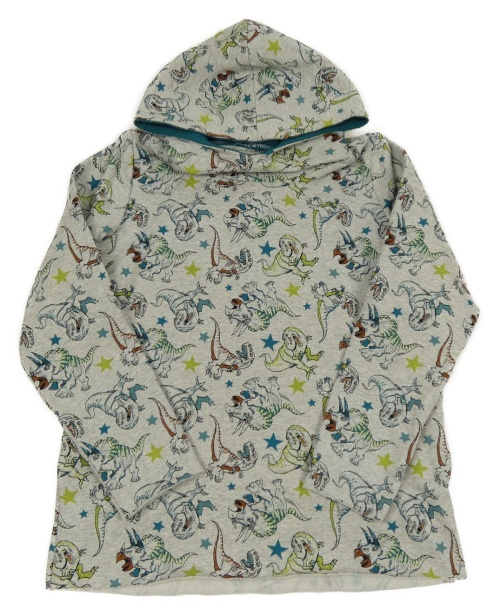 Šedá melírovaná mikina s dinosaury a kapucí