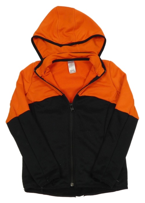 Červeno-černá sportovní propínací funkční mikina s kapucí Decathlon